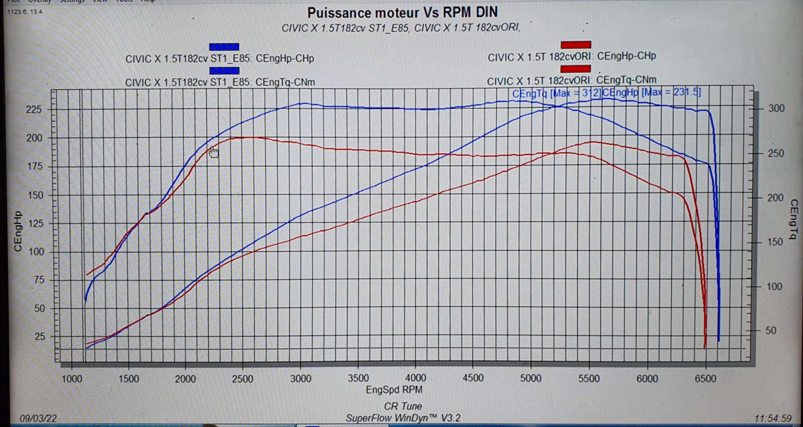 Les gains sur les préparations Stage 1 + E85 peuvent être limités par le débit de carburant, les gains annoncés ne peuvent donc pas être garantis