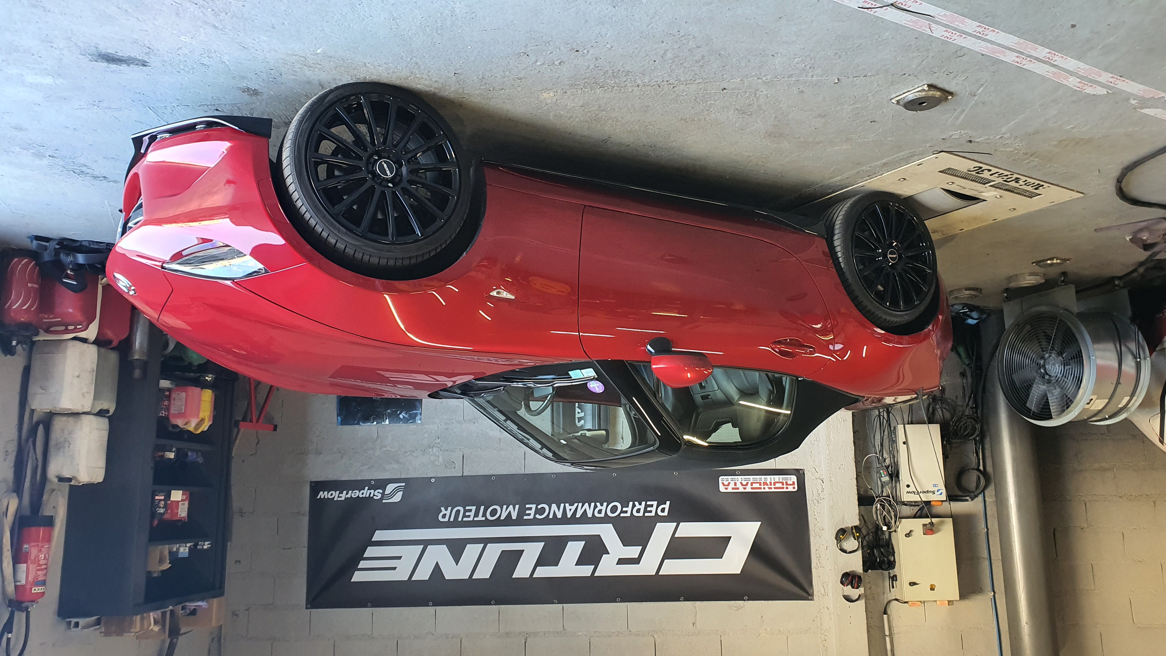 300Cv sans échangeurLa lotus équipée d'un Hondata Kpro et d'une large bande pour le réglage